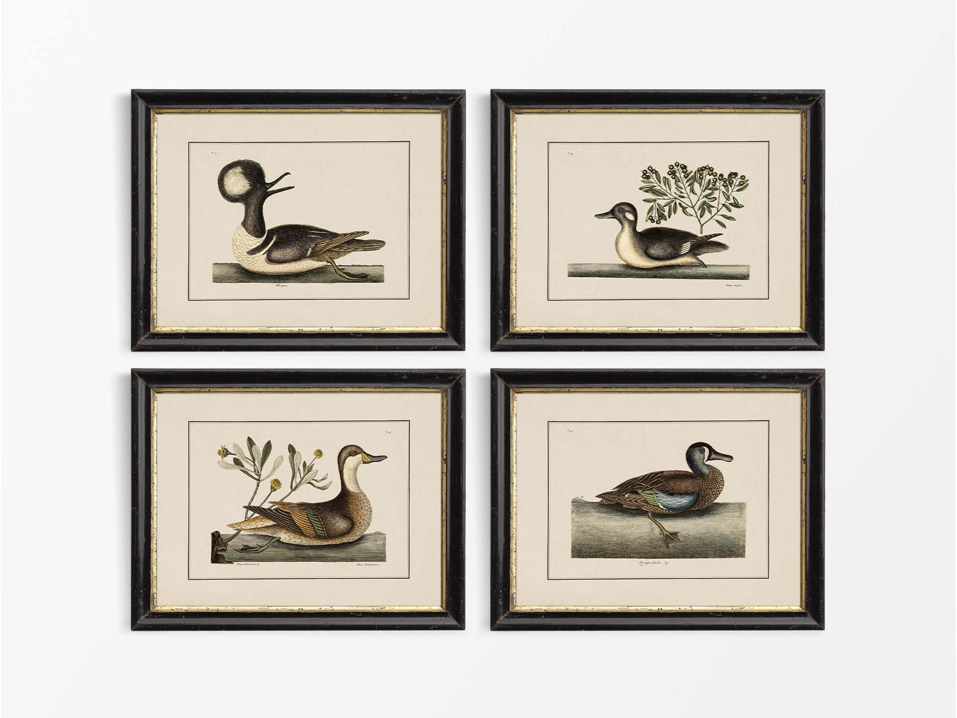 Set of Four Neutral Vintage Bird Illustrations, Antique Countryside Wall Art Prints, Rustic Botanical Farmhouse Décor, Country Artwork Paintings, Pintail, Merganser, Garganey, Duck