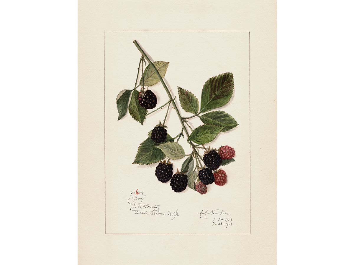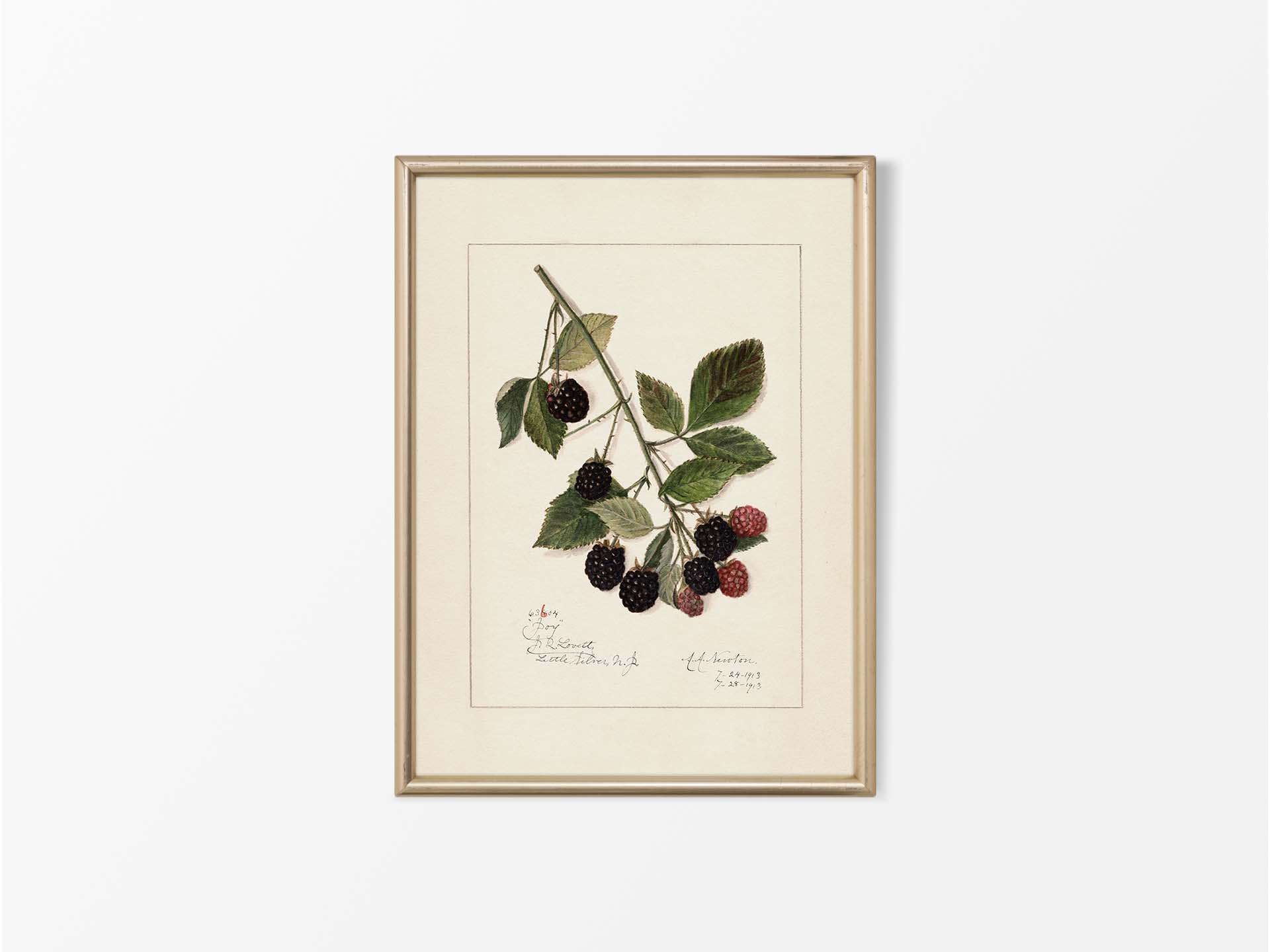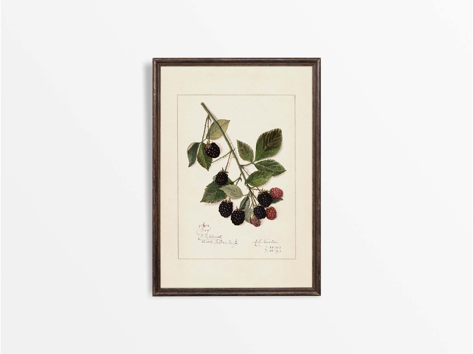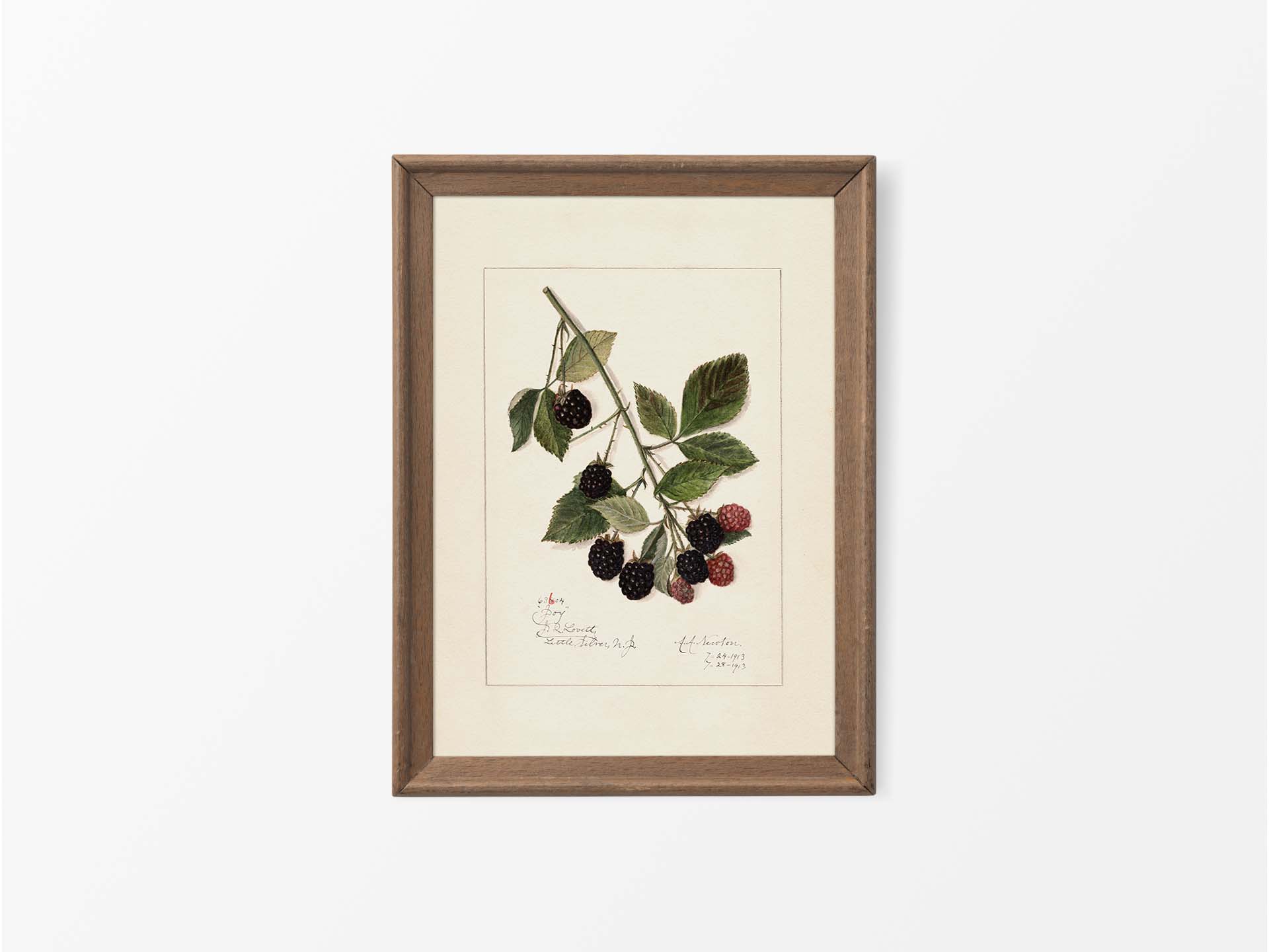 Antique Blackberry Pomological Botanical Drawing, Fruit Wall Art Print, Vintage Still Life Watercolour Painting, Country Farmhouse Kitchen Décor, Blackberries