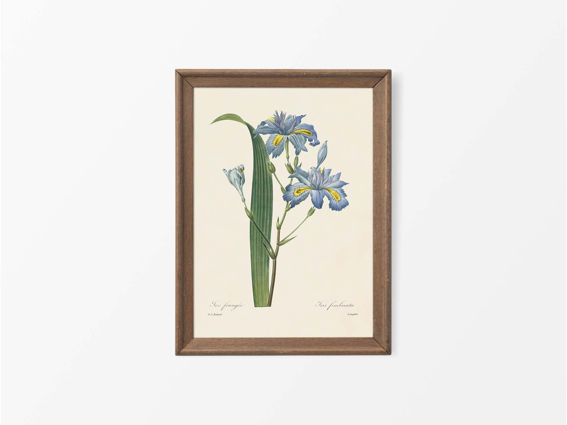 Vintage Iris Botanical Drawing Illustration, Antique Floral Still Life Painting, Neutral Flower Wall Art Print, Country Farmhouse Décor