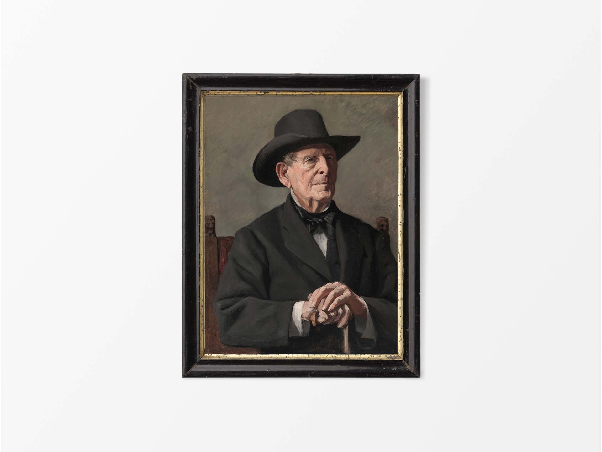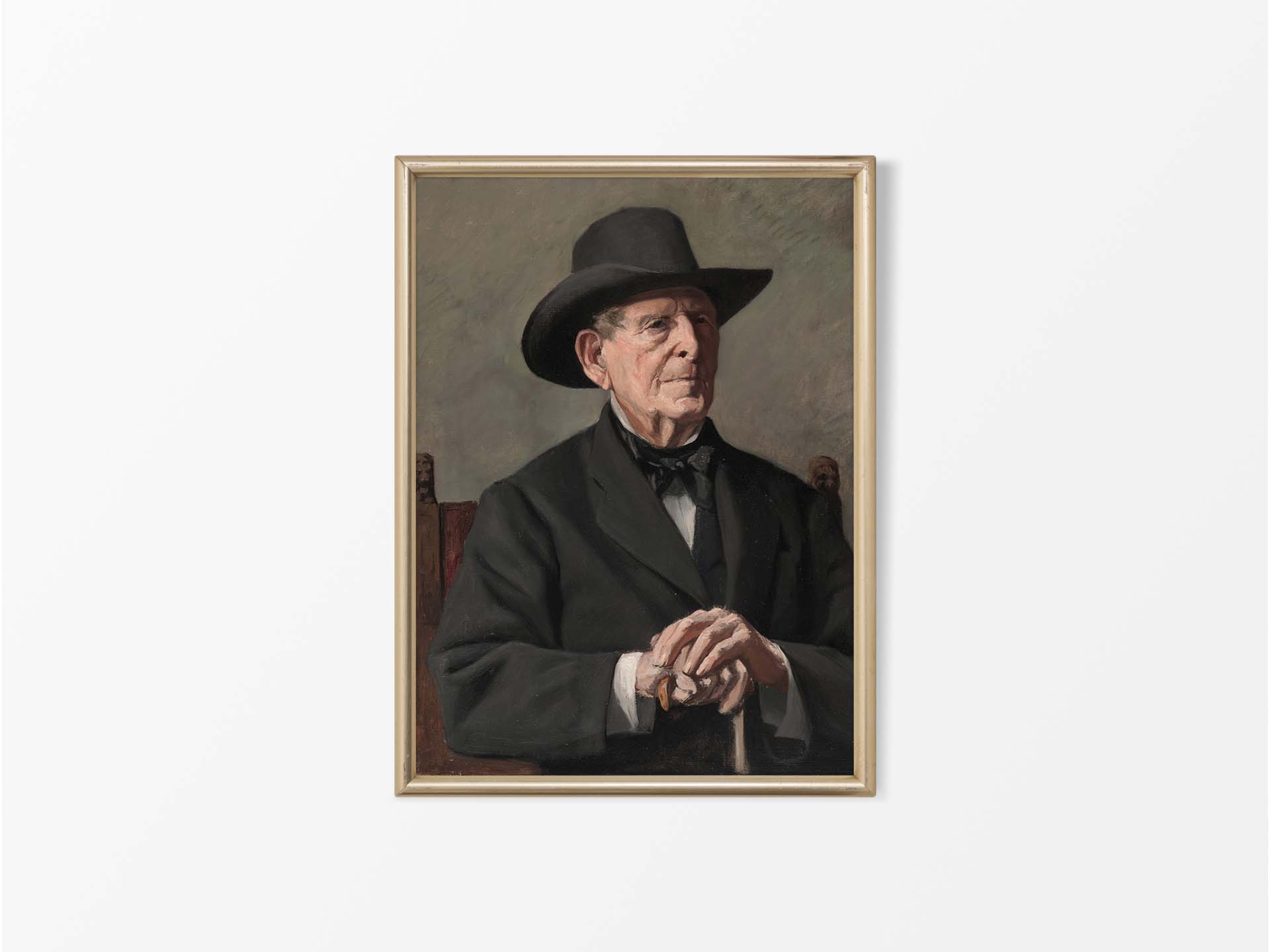 Moody Antique Portrait Oil Painting, Vintage Man Wall Art Print, Rustic Farmhouse Country Décor