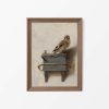 Vintage Goldfinch Still Life Wall Art Print, Neutral Antique Bird Oil Painting, Rustic Farmhouse Décor