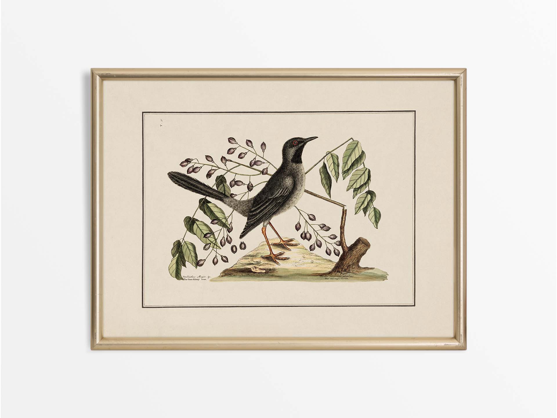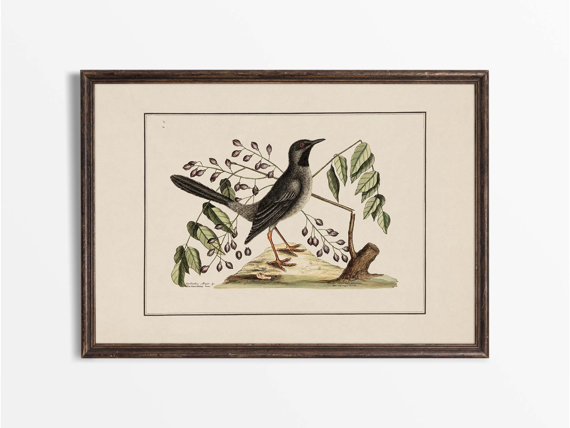 Neutral Vintage Bird Illustration, Antique Countryside Wall Art Print, Rustic Botanical Farmhouse Décor, Country Artwork Drawing Painting