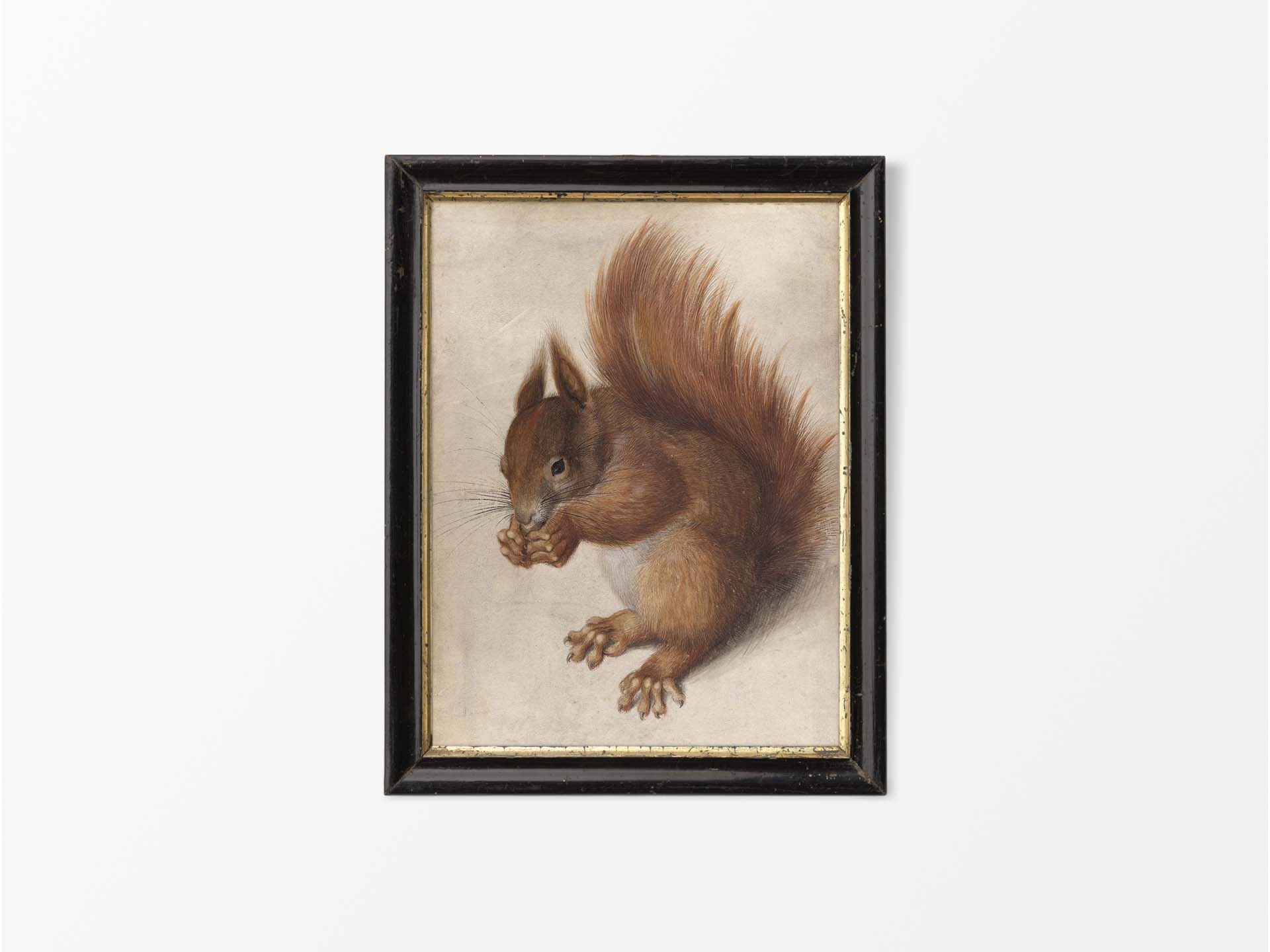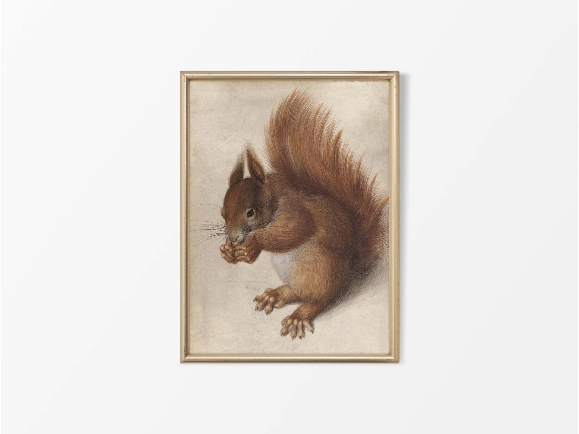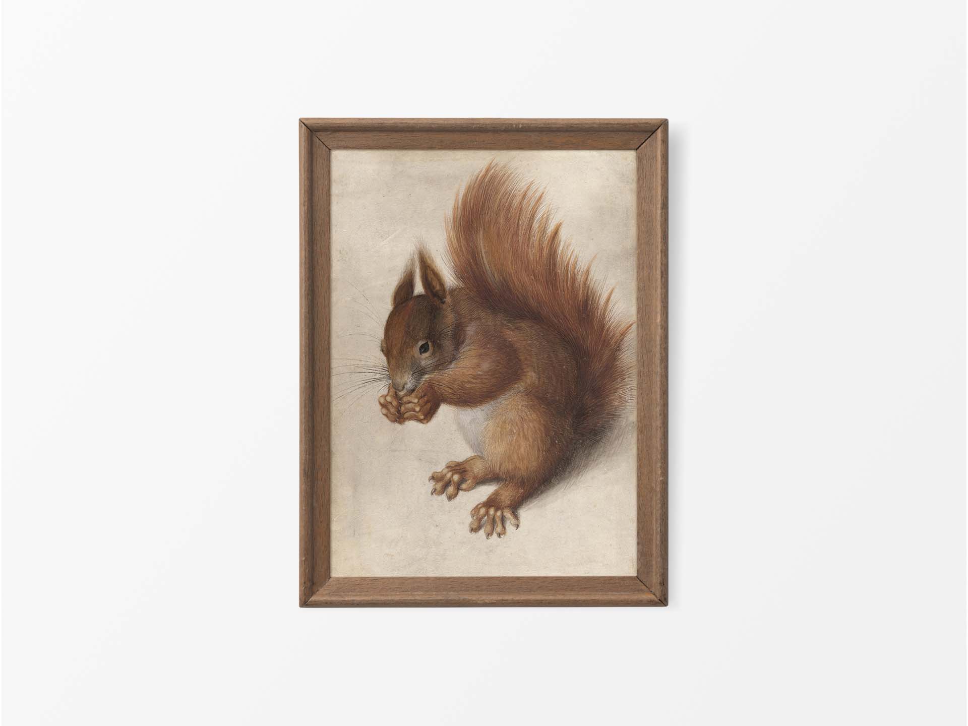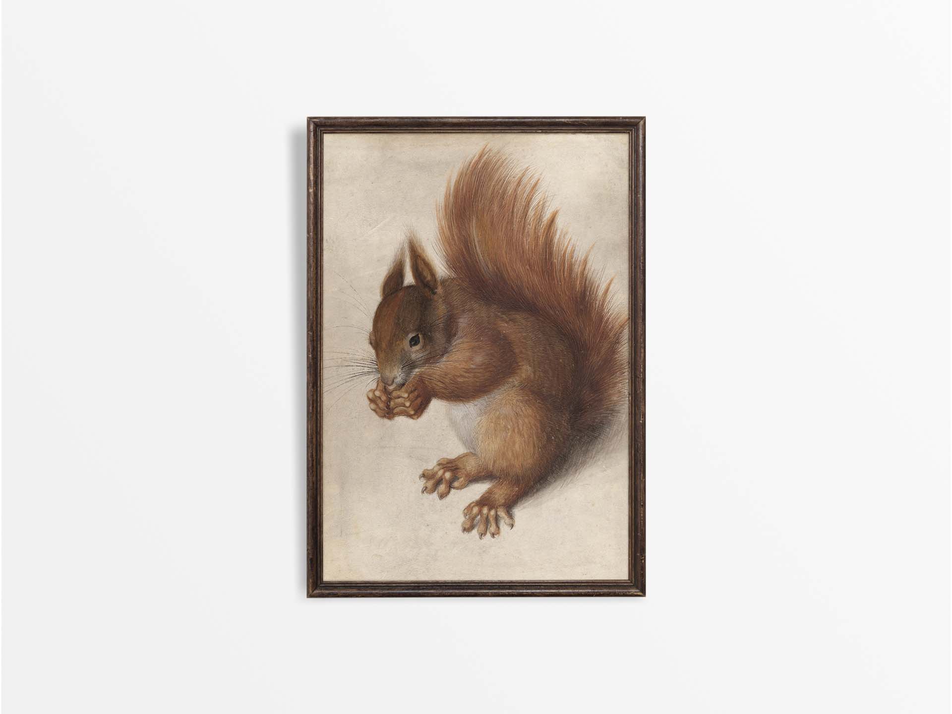 Vintage Red Squirrel Still Life Wall Art Print, Neutral Antique Animal Watercolour Painting, Rustic Countryside Farmhouse Décor, Fall Autumn