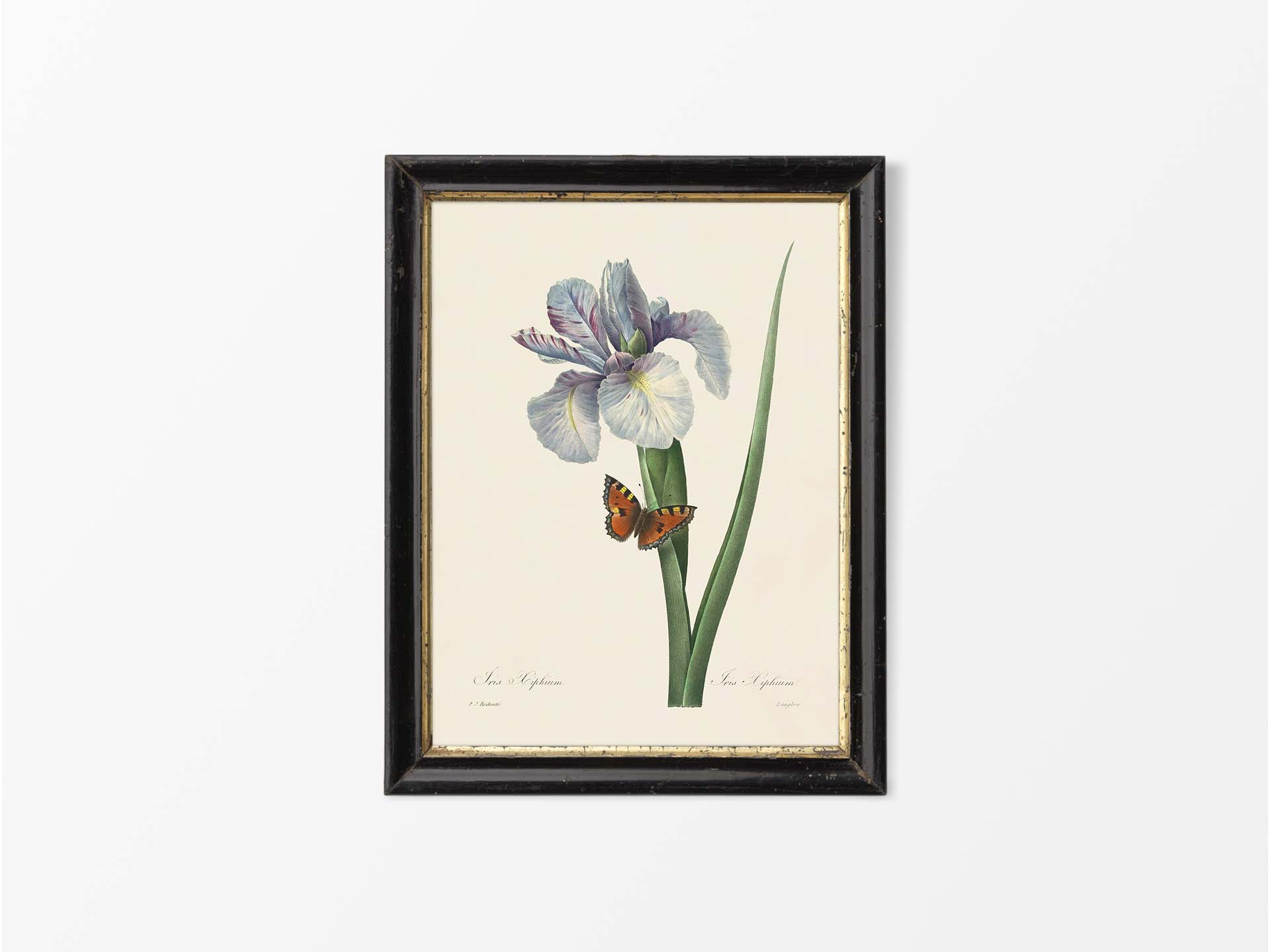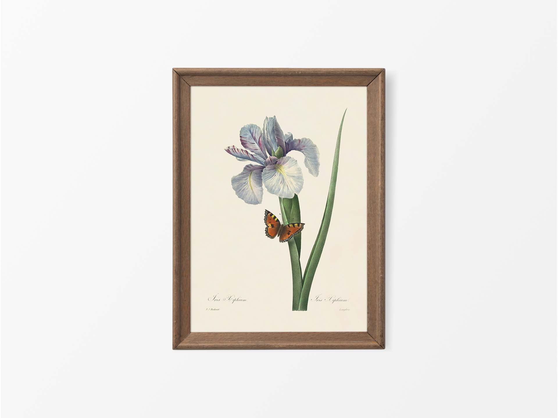 Vintage Iris Botanical Drawing Illustration, Antique Floral Still Life Painting, Neutral Flower Wall Art Print, Country Farmhouse Décor, Butterfly