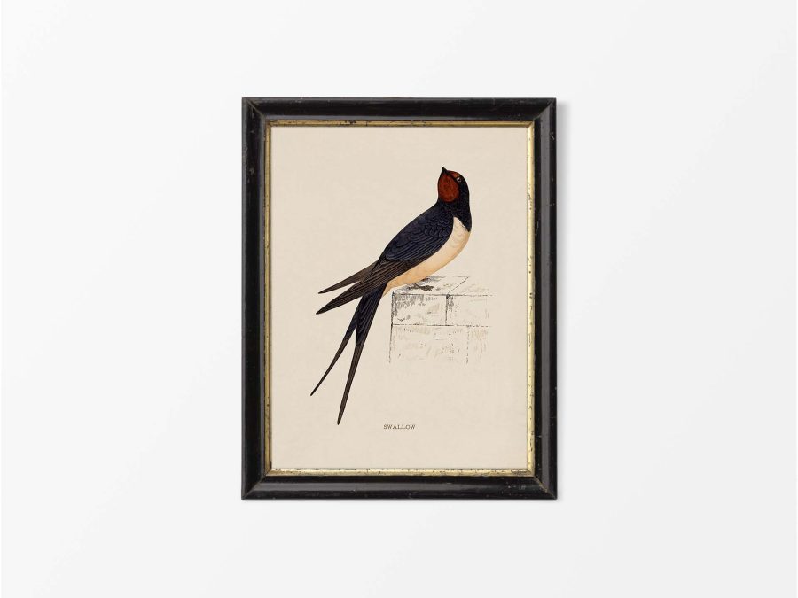Vintage Swallow Still Life Wall Art Print, Neutral Antique Bird Painting, Rustic Countryside Farmhouse Décor