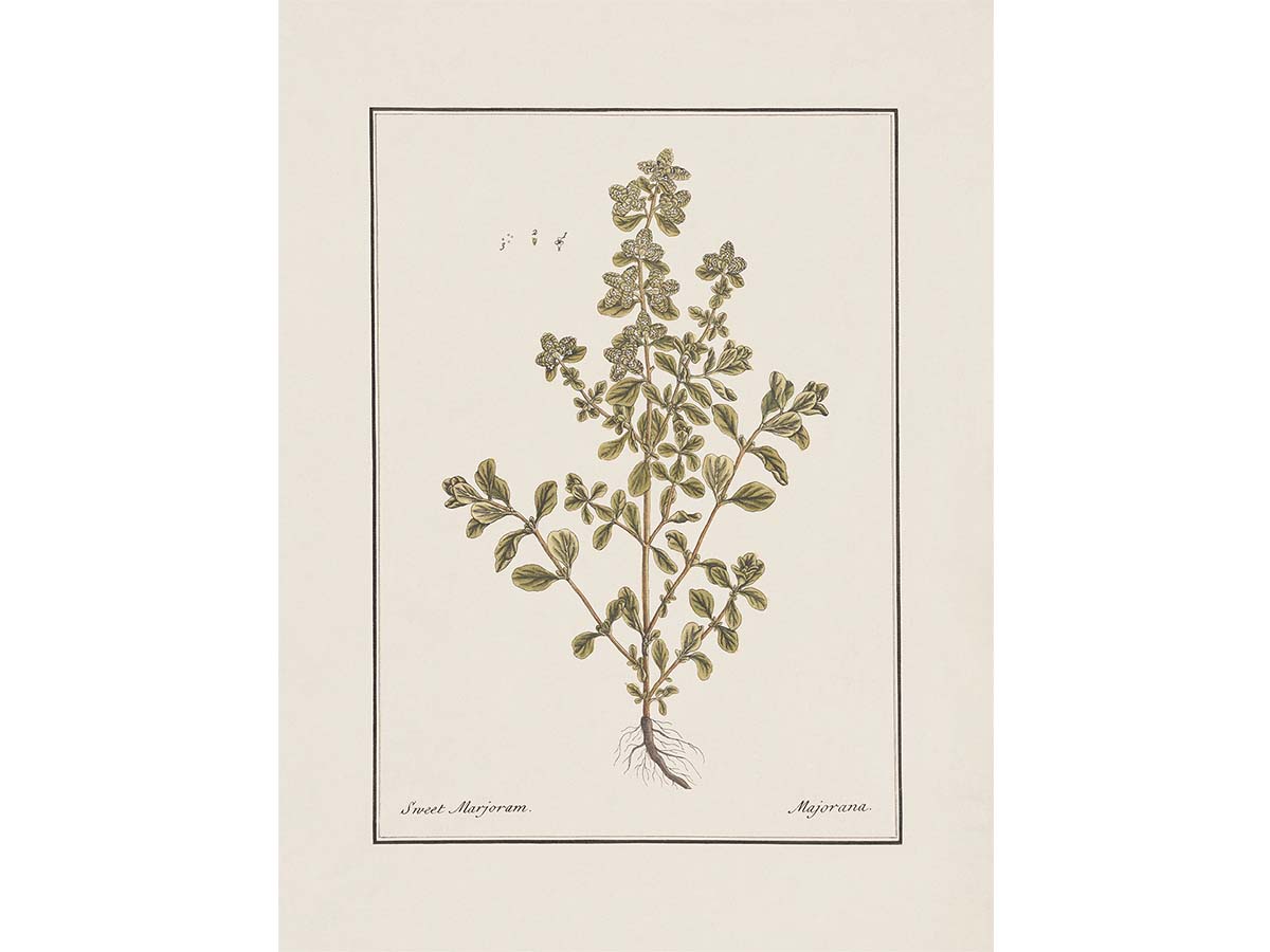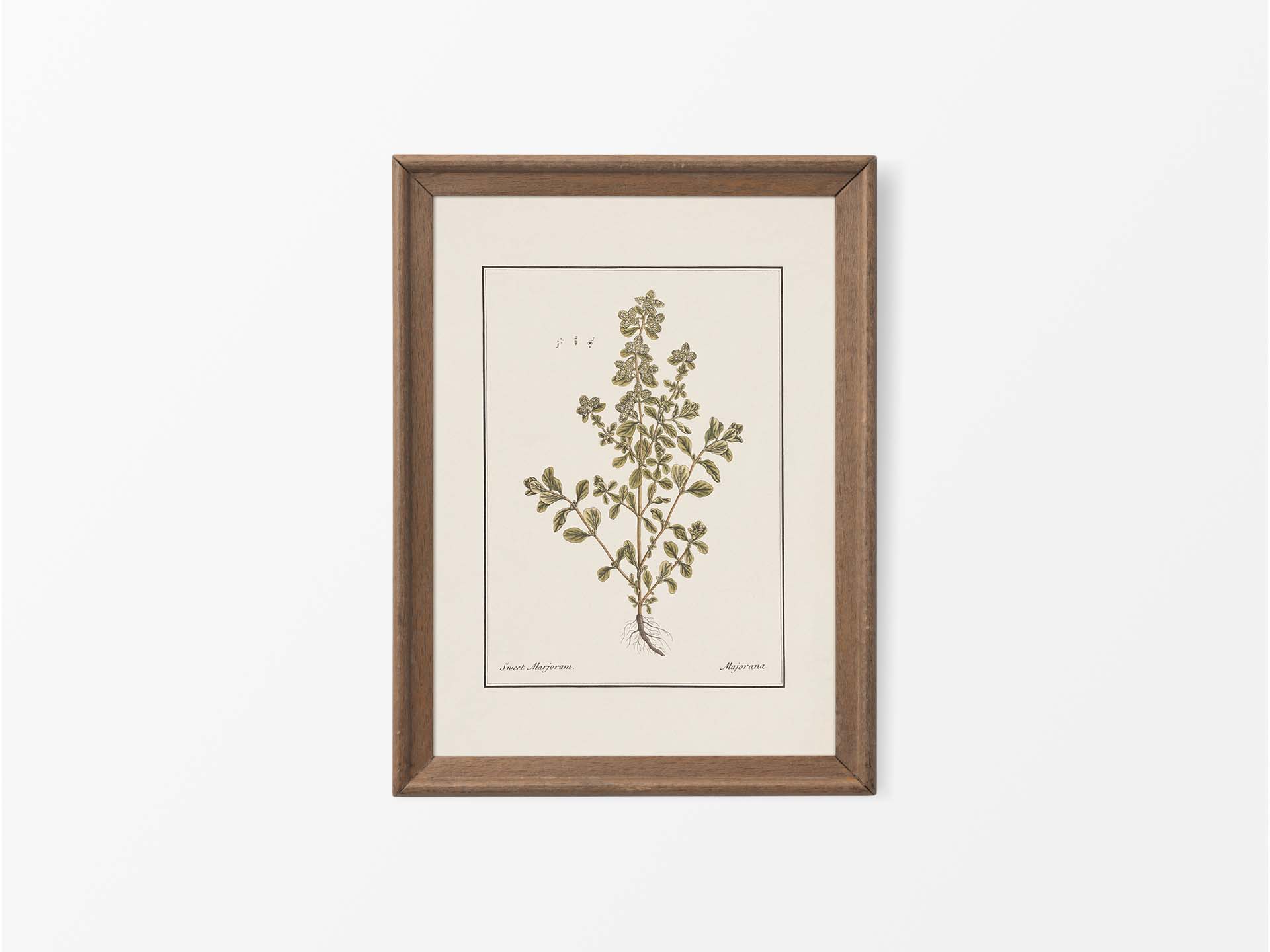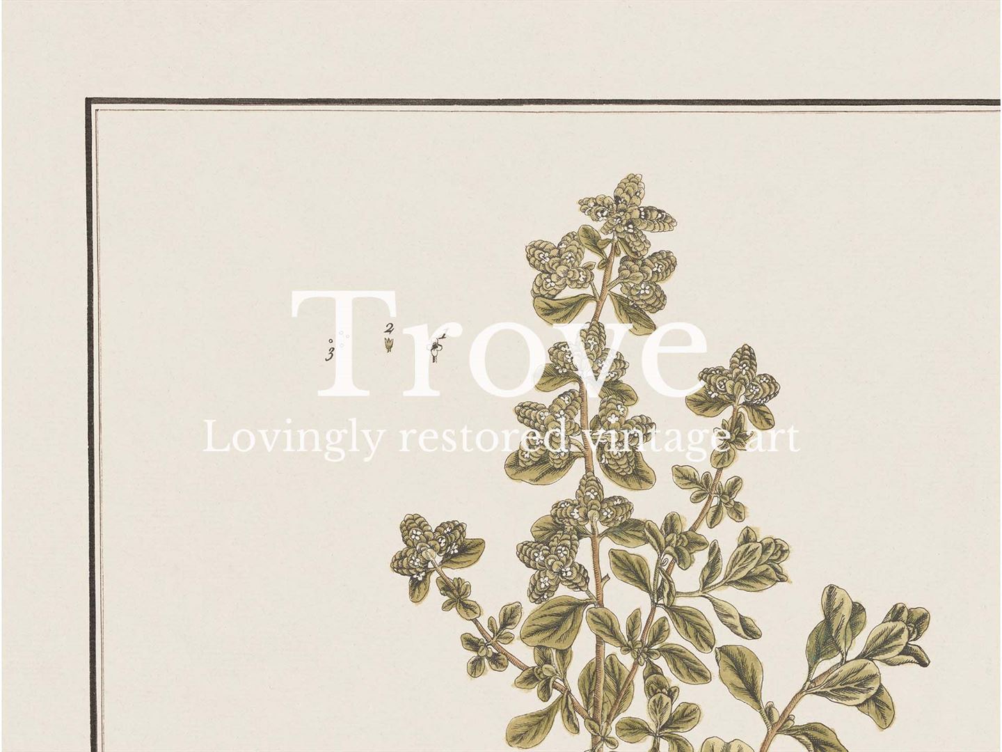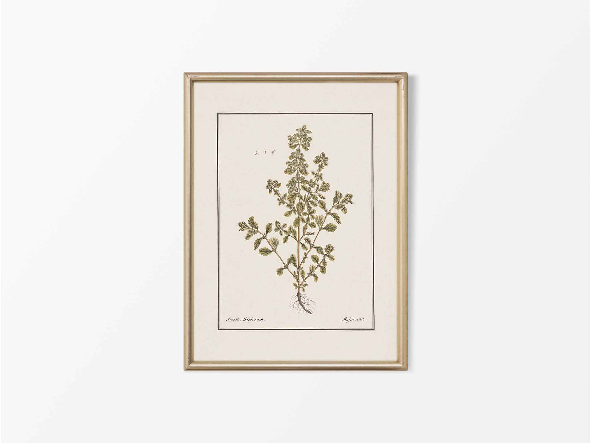 Antique Marjoram Botanical Drawing, Herb Wall Art Print, Vintage Still Life Painting, Floral Country Farmhouse Kitchen Décor, Herbs